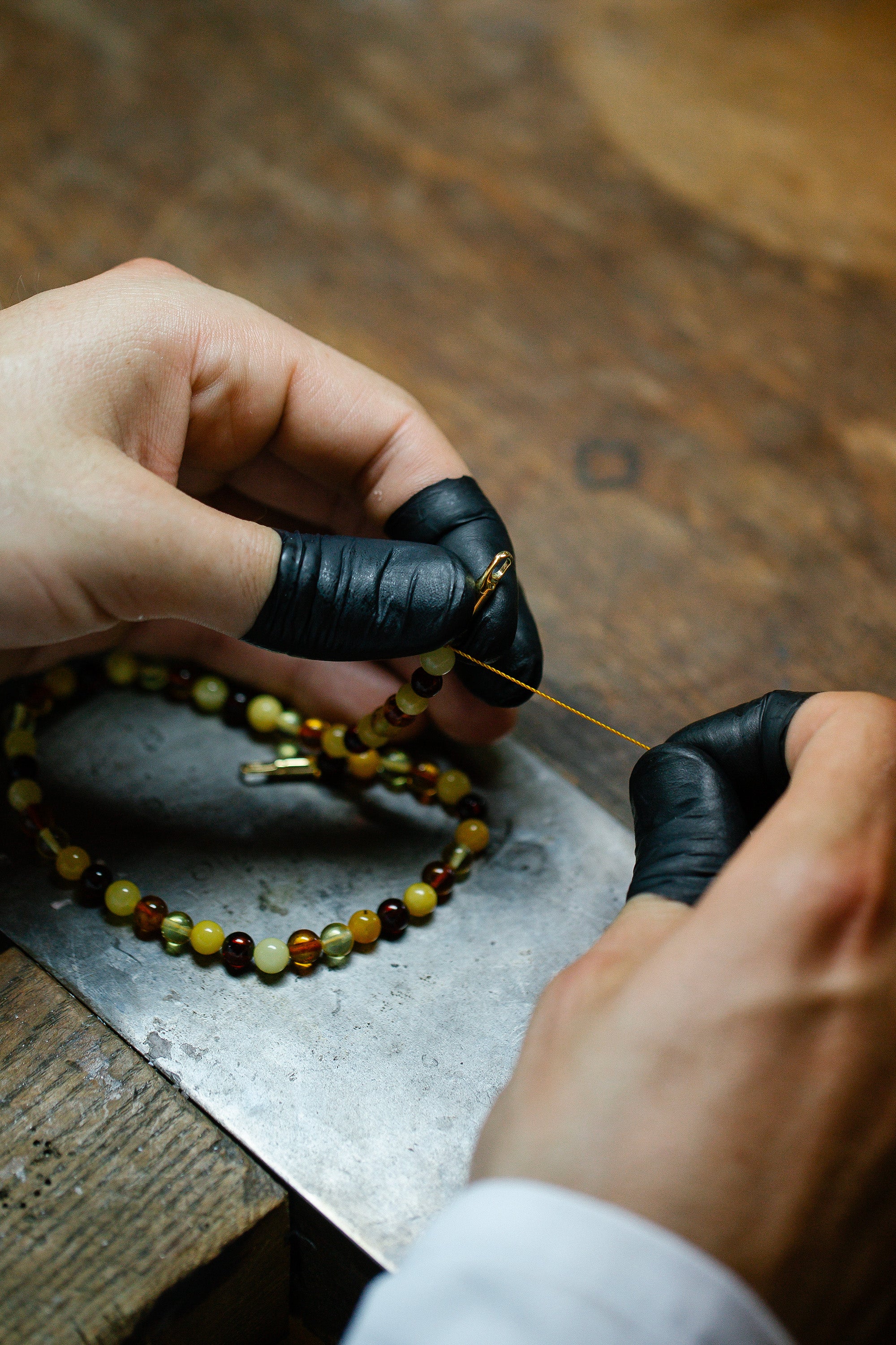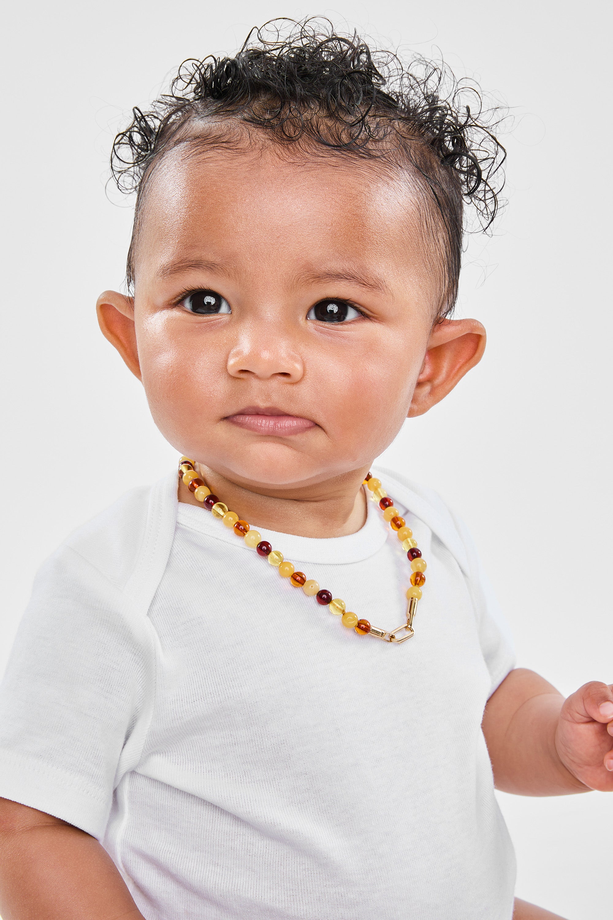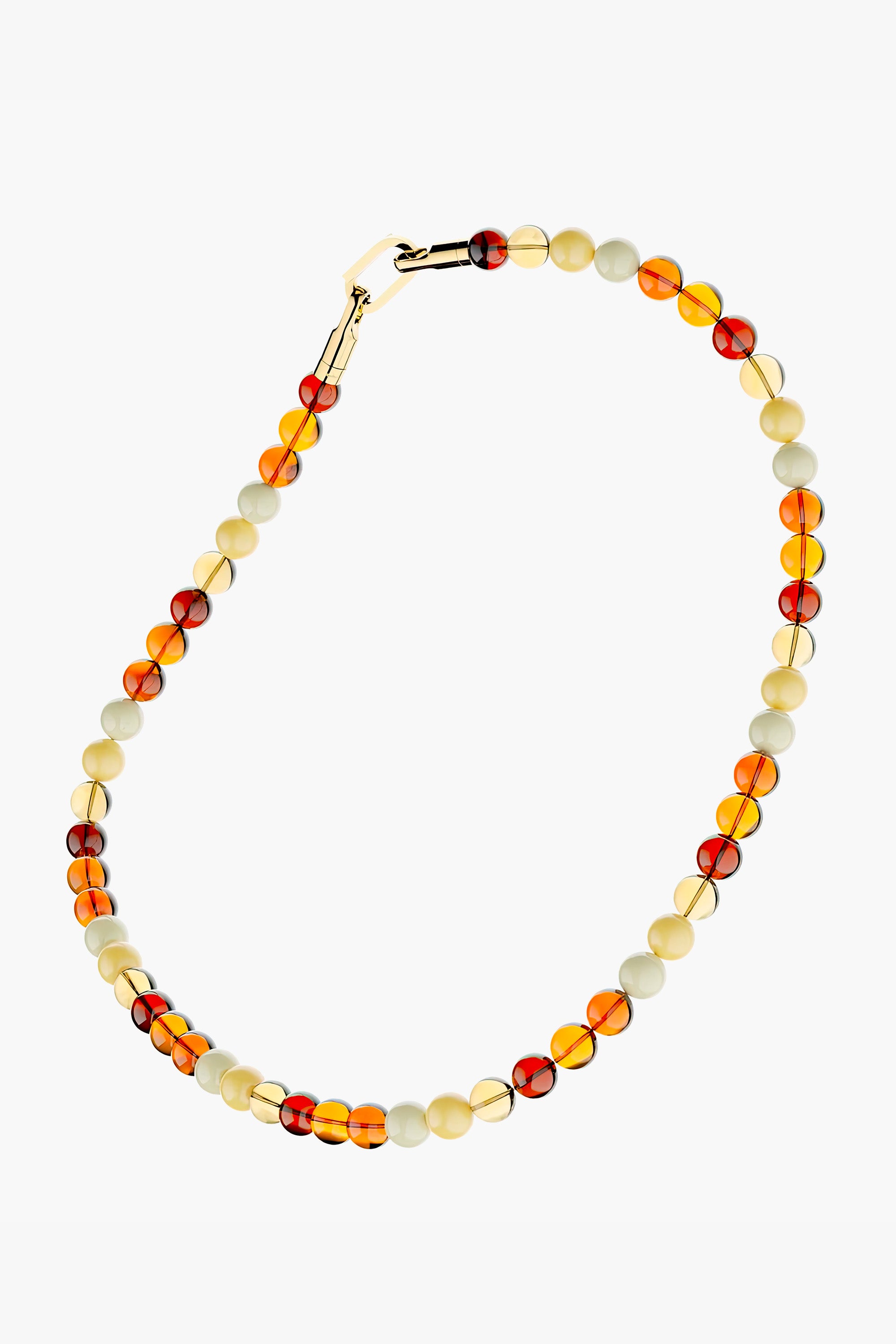 Die Baby Amber Clip Necklace greift diese Tradition neu auf. Sorgfältig handgefertigte Bernsteinperlen in warmen, goldenen Naturtönen treffen auf einen modernen Paper-Clip-Verschluss aus 18-Karat-Gold oder 925er-Sterlingsilber.
