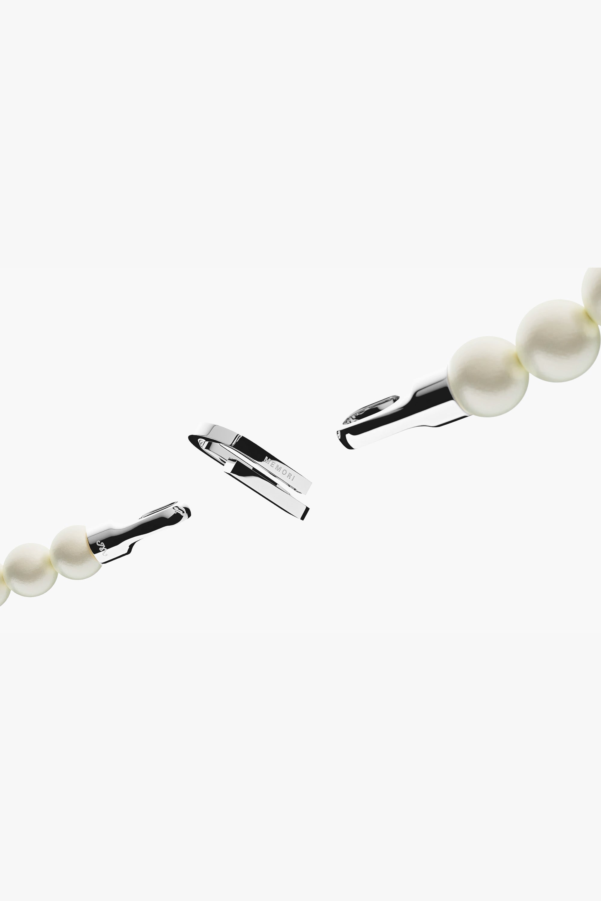 Die Pearl Clip Necklace verbindet klassische Süßwasserperlen mit einem modernen Clip-Verschluss aus 18-Karat-Gold oder 925er-Sterlingsilber.